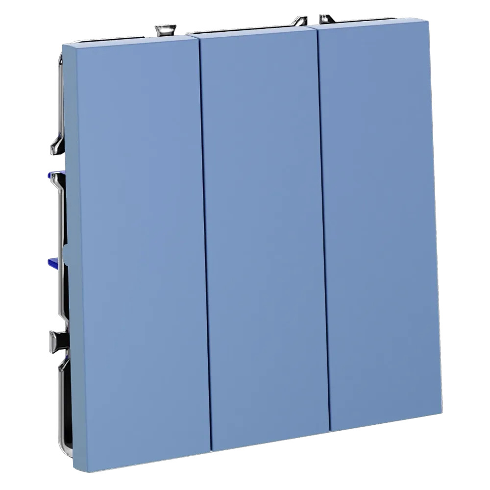 Трехклавишный выключатель VOLTUM S70 в цвете «деним» — это элегантное и функциональное решение для управления тремя независимыми световыми зонами из одной точки. Идеально подходит для гостиных, спален, кухонь и прихожих, где требуется раздельное включение основного, декоративного и акцентного освещения.